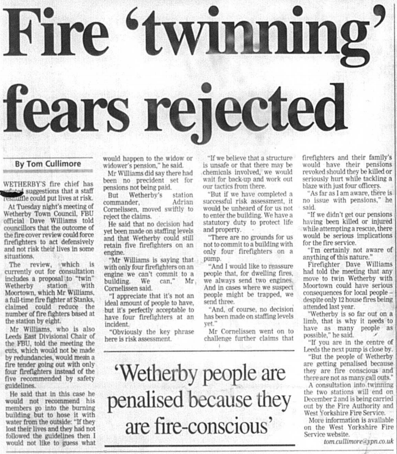 The first fire station Wetherby had was based at the top of Scott Lane according to Emily Wardman who wrote ‘Wetherby – Its People and Customs’ Here is the extract that mentions it,